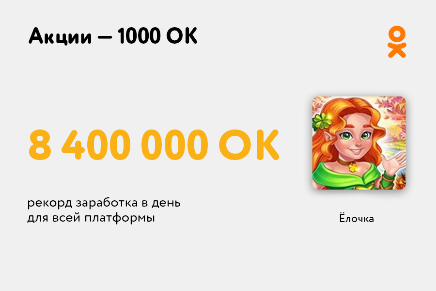 Среди разработчиков есть и рекордсмены: в игре «Целуй и знакомься» пользователи за день потратили почти 3,8 млн ОКов на мобильной платформе, в игре «Елочка» — 8,4 млн ОКов на обеих платформах.